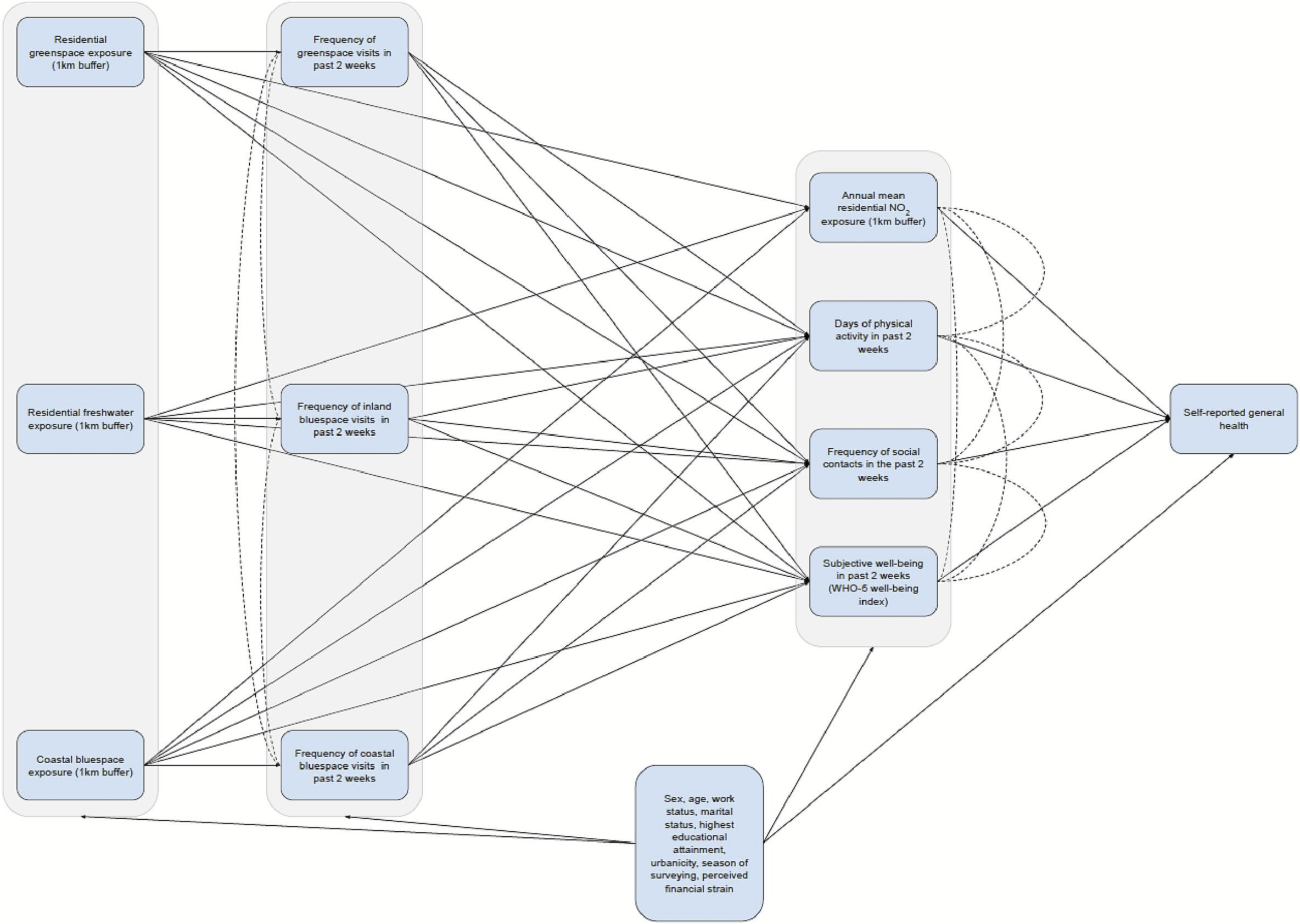 Across the 18 countries, they found that recreational visits to nature are a key driver linking access to green, inland blue, and coastal blue spaces, with general health. Pathways connecting physical activity, social contact, and subjective well-being with these recreational visits were strongly supported, but differed in strength with environment type and across sociodemographic groups.